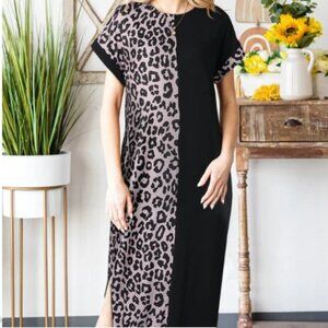 NEW LEOPARD PRINT T-SHIRT LONG DRESS