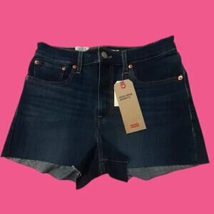 NEW LEVI'S Jean Shorts Size 10 Dark Wash Denim Ultra High Rise Frayed Raw Hem