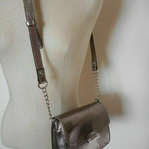 NEW LIBBY EDELMAN Shiny Lead Silver Color Mini Cross body Handbag