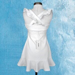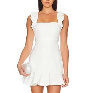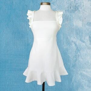NEW LIKELY Hara Mini Dress Sz 4 White Square neck Flounce Hem Revolve Sleeveless