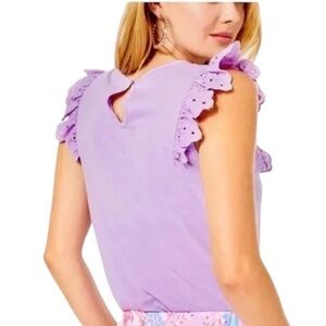 NEW LILLY PULITZER Bev Top in Purple Iris Eyelet Detail at Neckline Size Medium