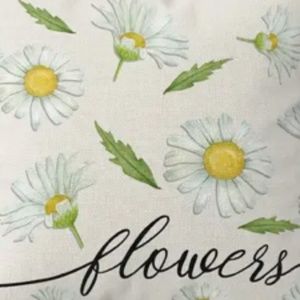 NEW LINEN FLORAL DAISIES SPRING/SUMMER DECORATIVE FLOWERS QUOTE PILLOW 18" X 18"