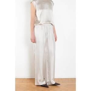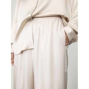 - Description: The Lisa Yang Wide Leg Trousers in a sophisticated champagne hue are crafted from 100% silk, offering a luxurious feel and polished look. Designed with a comfortable elastic waist and a flattering mid-rise, these trousers feature a pull-on closure and practical pockets. With a true-to-size fit, they offer elegance for any occasion. Elevate your style with these solid-pattern trousers, ideal for refined, everyday wear.