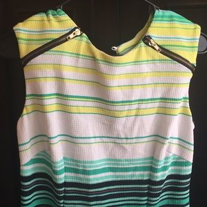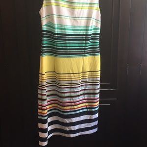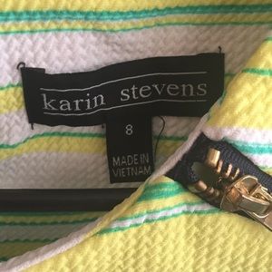 This listing is for Karin Stevens dress size 8. Worn for a few hours. Front zipper detail. Button closure.