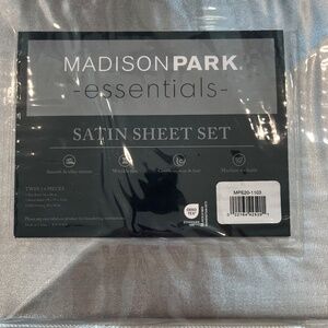 NEW LISTING: Madison Park Essential Silk Twin Sheet set; gray/silver; new w tags