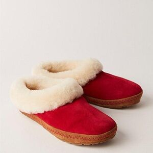 NEW L.L.Bean Wicked Good Squam Lake Slippers Shearling Fur Suede Red Sz 8