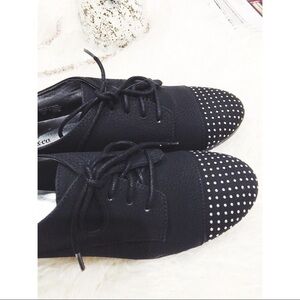 NEW LOAFERS STUDDED FAUX LEATHER FLATS BLACK SHOES