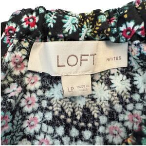 The LOFT Garden Dobby tie back ruffle blouse features a lovely multicolor floral pattern. Looks great with jeans, slacks, or skirts for a variety of occasions.