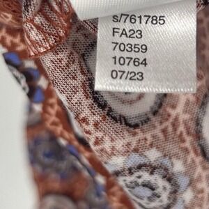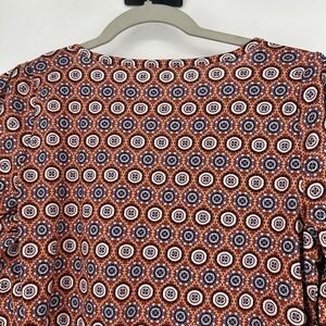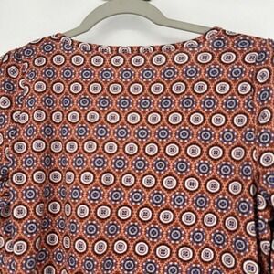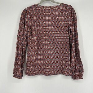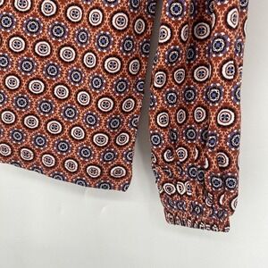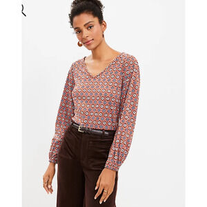 NEW LOFT Medallion Pleated V Neck Long Balloon Sleeve Tee Shirt Orange Size S