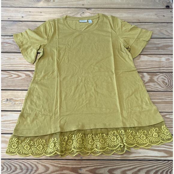 NEW LOGO by Lori GoldsteinLace Hem Cotton Modal Top Size Small Women’s Mustard
