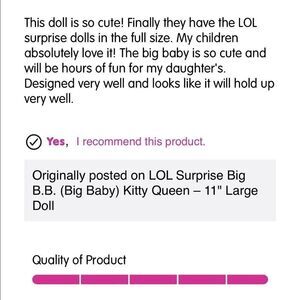 Introducing the NEW LOL Surprise Big B.B.-Big Baby a BIG version of a fan favorite character w/real fashions & cute accessories to unbox. MC Swag now comes in a BIG size 11” tall & she's totally posable.