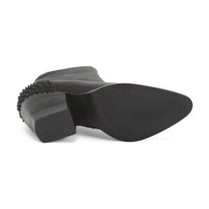 spiked studded trim, grip sole, cushioned footbed, stacked block heel, size chart conversion may vary slightly by country