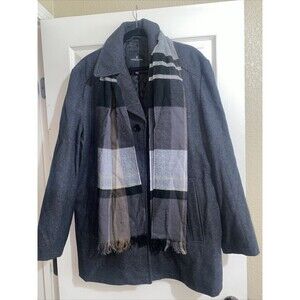 NEW LONDON FOG Mens Wool Trench pea Coat jacket scarf L Jacket luxury classic