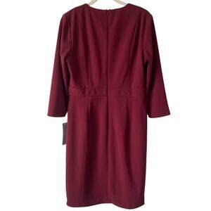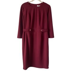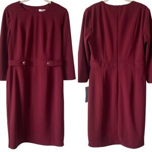 NEW LONDON TIMES Jewel Neck Three Quarter Sleeve Sheath Dress Wine Red Size 10 Business Casual Career Professional Holiday Feminine Classic Classy Timeless Lined Knee Length
