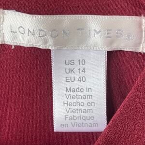 NEW LONDON TIMES Jewel Neck Three Quarter Sleeve Sheath Dress Wine Red Size 10
