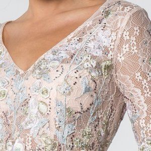 NEW LONG A-LINE FORMAL DRESS WITH TRUMPET SLEEVES EMBROIDERED WITH LACE GL1592