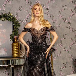 NEW LONG FORMAL OFF THE SHOULDER MERMAID DRESS EMBROIDERED WITH SEQUINS GL3496