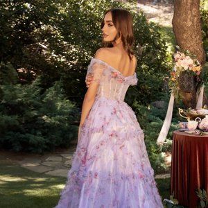 NEW LONG FORMAL OFF THE SHOULDER SLEEVELESS DRESS WITH FLORAL PATTERN CD A1286