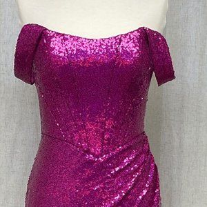 NEW LONG OFF THE SHOULDER EMBROIDERED SEQUIN DRESS WITH ZIPPER BACK NX R1203
