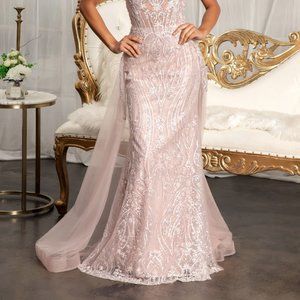 NEW LONG OFF THE SHOULDER SLEEVELESS MERMAID MESH DRESS WITH ZIPPER BACK GL3043