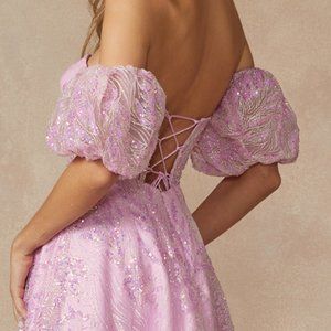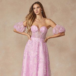 NEW LONG OFF THE SHOULDER STRAPLESS A-LINE GOWN EMBROIDERED WITH SEQUINS JT 2404