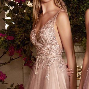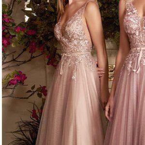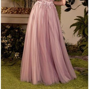 NEW LONG SLEEVELESS EMBROIDERED A-LINE TULLE DRESS WITH ZIPPER BACK AL A1045