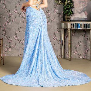 NEW LONG SLEEVLEESS MERMAID LACE UP BACK DRESS EMBROIDERED WITH SEQUINS GL3322