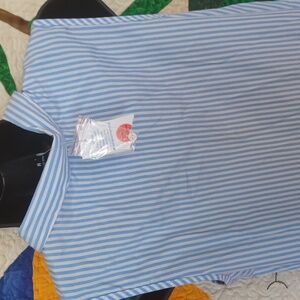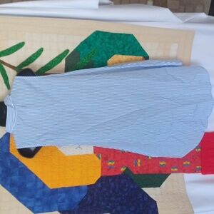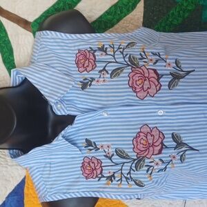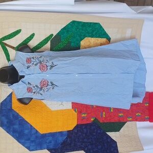 NEW LOOK Blue/white Striped Button Down cotton blend Dress, embroidered floral