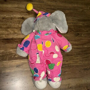 NEW LOOKS VTG VHTF Item 980129 Stuffed Animal Toy Elephant Circus Pink/Yellow Plush Elephant with party hat