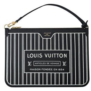 NEW LOUIS VUITTON Calfskin Neverfull Inside Out MM Pochette Black Stripe Bag Zip