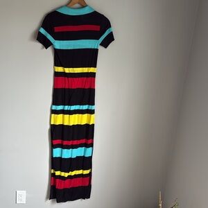 NEW LOUISA BALLOU Striped Polo Maxi Dress In Black Small