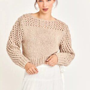 NEW LOVE SHACK FANCY Larson Cropped Pull Over Sweater antique fawn 1065t