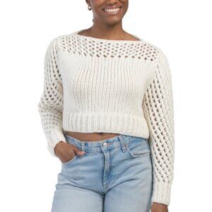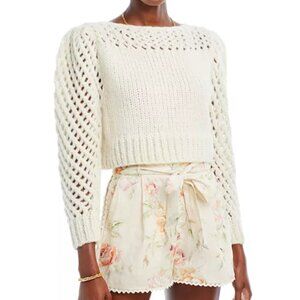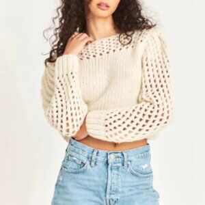 NEW LOVE SHACK FANCY Larson Cropped Pull Over Sweater antique white 1065tn