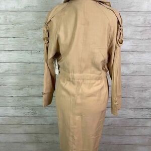 NWT, Love Token Stripe Print Lightweight Trench Coat NWT Classic printed stripes accentuates a trench coat with a signature notch collar. - Notch collar - Long sleeves - Front button closure - Allover stripe print - Front tie detail m • Dry clean only Beige 60% modal, 40% polyester Size xtra small Flat measurements approximately armpit to armpit 19” length 38” spring trench coat