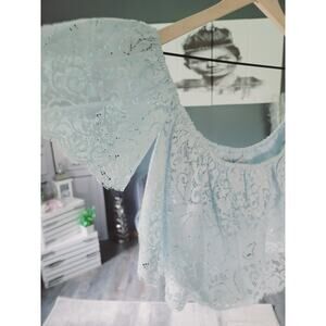 New Lovers and Friends Pacific Blue Lace Overlay Crop Top
