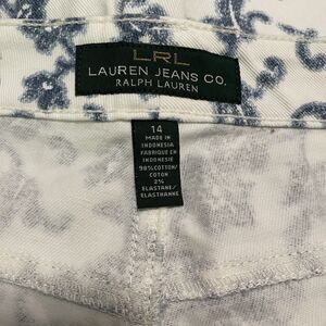 NEW LRL Lauren Jeans Co Ralph White Denim Shorts Blue Floral Vine Sz 14 Vintage