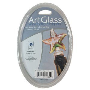 NEW LS Arts Art Glass Wine Bottle Stopper Fits Most Wine Bottles Pearlized Teardrop Leaf Shape Stripes Dots. Excellent condition with no stains, chips or cracks.
