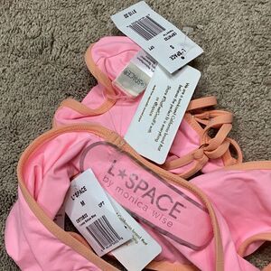 NEW. L*SPACE pink teeny bitsy bikini set. S-top/M-bottom. Retails $209