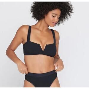 NEW L'Space Lee Lee Black Sculpt Rib Knit V Neck Sleeveless Swim Bikini Top XS