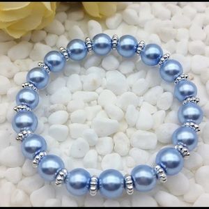 💎NEW Light Blue 8mm Glass Pearl/Silv Stretch Bracelet