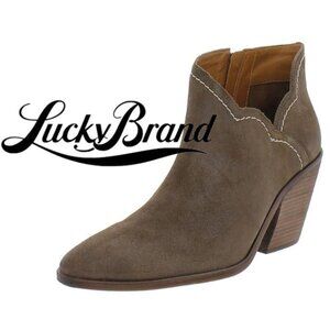 NEW LUCKY BRAND Brown Lakelyy Almond Toe Stacked Heel Leather Booties Size 9M