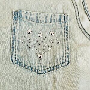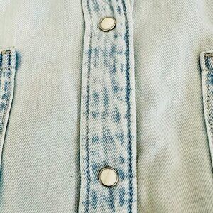 NEW LUCKY BRAND SLEEVELESS FRAYED BOTTOM EDGE STUDDED BOTTON-DOWN DENIM SHIRT