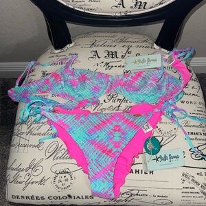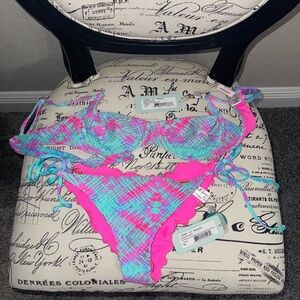 Stylish and vibrant, this pink and blue bikini set is perfect for your next beach getaway. Enjoy comfort and fashion in one stunning piece.