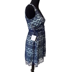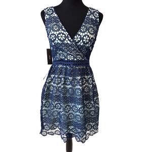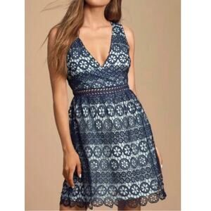 NEW LULU'S Women's Navy Blue Forever My Love Crochet Lace Skater Dress Size L