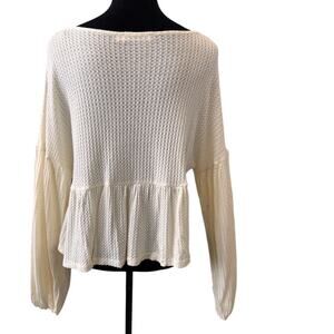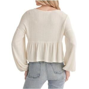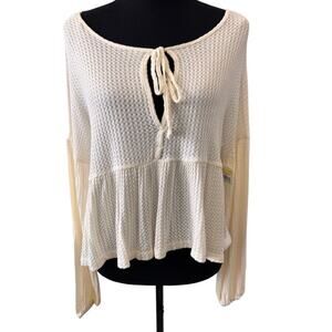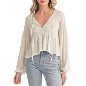 NEW LUSH NORDSTROM Cream Long Sleeve Waffle Knit Babydoll Top Size M