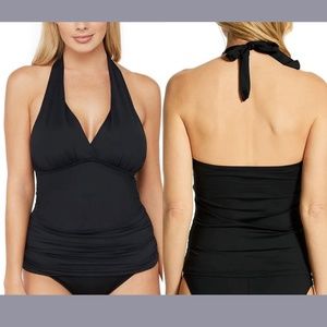 NEW $93 La Blanca [ 6 ] Island Goddess Halter Tankini Top in Black #U295