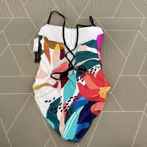 NEW La Blanca Eclectic Shore One Piece Swimsuit Size 12 Multicolor Tummy Control