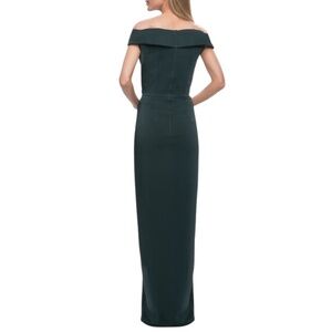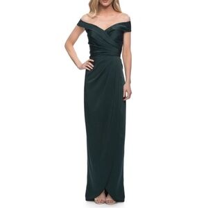 NEW La Femme 25206 Off Shoulder Ruched Draped Tulip Gown in Emerald Sz. 4