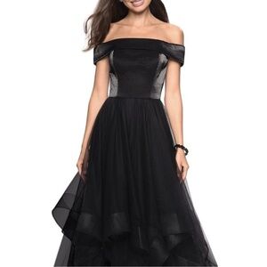 NEW La Femme 27224 Off Shoulder Tulle Gown in Black Sz. 6