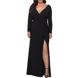 NEW La Femme 29044 Long Sleeve Ruched Gown in Black Sz. 14